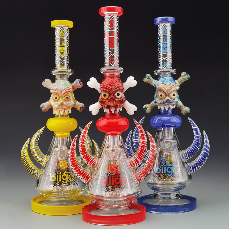 The 14" BIIGO Witchy Skull Glass Bong is crafted from high-quality borosilicate glass, designed not only to elevate your smoking experience but also to serve as a striking piece of art.